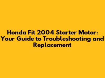 Honda Fit 2004 Starter Motor: Troubleshooting & Replacement