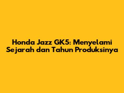 Honda Jazz GK5, sebuah nama yang tak asing lagi bagi para penggemar mobil kompak di Indonesia. Generasi ketiga dari keluarga Jazz ini, dikenal dengan kode bodi GK5, berhasil mencuri perhatian berkat desainnya yang sporty, performa yang mumpuni, dan fitur-fitur modern. Tapi, sebenarnya Honda Jazz GK5 mulai tahun berapa diproduksi dan dipasarkan? Mari kita telusuri lebih dalam sejarah dan detail produksinya.