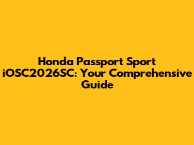 Honda Passport Sport IOSC2026SC: Everything You Need To Know