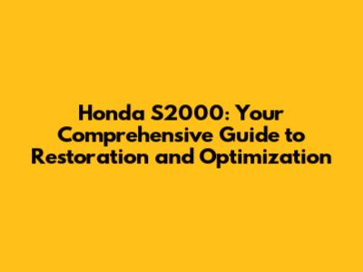 Honda S2000: Ultimate Guide To Restoration And Optimization