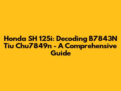Honda SH 125i: Decoding B7843N Tiu Chu7849n - A Comprehensive Guide