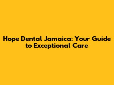 Hope Dental Jamaica: Your Guide To Exceptional Care