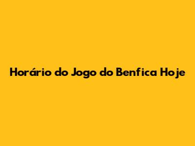 Horário Do Jogo Do Benfica Hoje