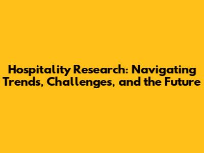 Hospitality Research: Trends, Challenges, And Future