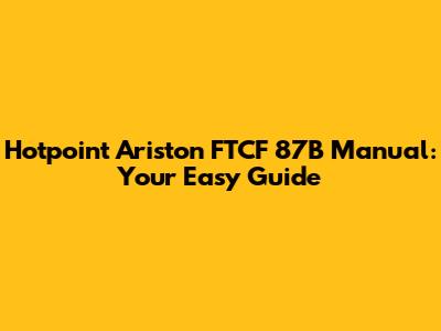 Hotpoint Ariston FTCF 87B Manual: Your Easy Guide