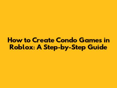 How To Create Condo Games In Roblox: A Step-by-Step Guide