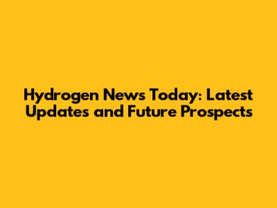 Hydrogen News Today: Latest Updates And Future Prospects