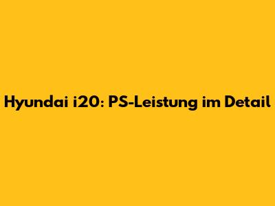 Hyundai I20: PS-Leistung & Modellübersicht