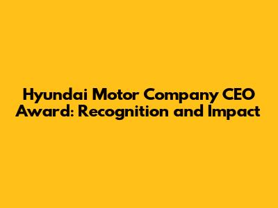 Hyundai Motor Company CEO Award: Recognition And Impact