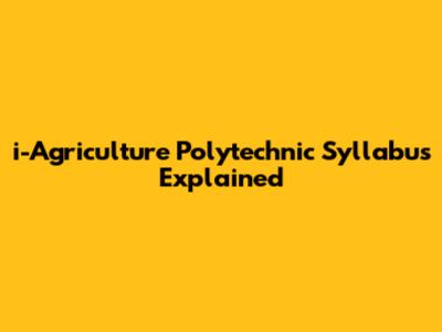 I-Agriculture Polytechnic Syllabus Explained