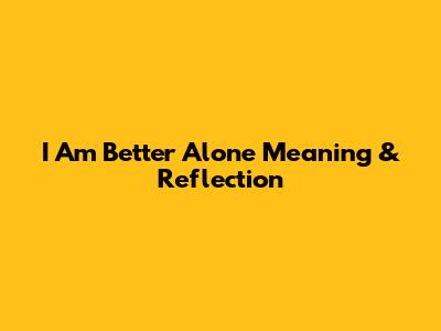 I Am Better Alone: Meaning & Reflection