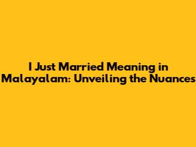 I Just Married Meaning In Malayalam: Your Guide