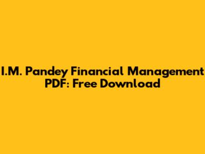 I.M. Pandey Financial Management PDF: Free Download