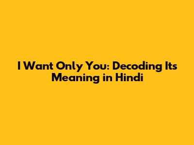 I Want Only You: Unveiling The Meaning In Hindi