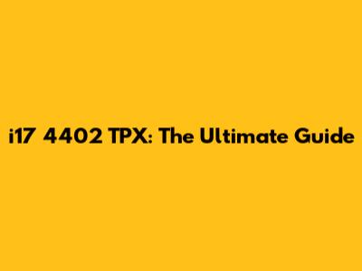 I17 4402 TPX: Ultimate Guide, Specs, And More