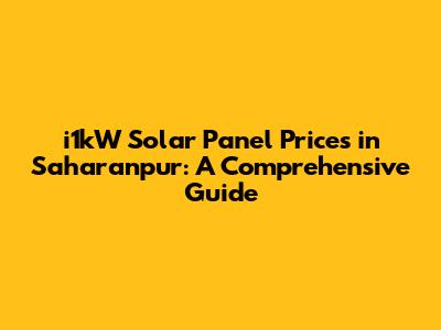 I1kW Solar Panel Prices In Saharanpur: A Comprehensive Guide