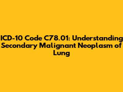 In conclusion, ICD-10 code C78.01 signifies a secondary malignant neoplasm of the lung, highlighting the spread of cancer from a primary site to the lungs. Understanding this code is vital for accurate diagnosis, appropriate treatment planning, and effective healthcare management. From identifying common primary cancer sites to employing comprehensive diagnostic procedures and tailoring treatment options, a multidisciplinary approach is essential for patients with C78.01. Moreover, the importance of accurate coding cannot be overstated, as it ensures proper reimbursement, facilitates data analysis, and promotes patient safety. By prioritizing accuracy and staying informed about the latest coding guidelines, healthcare professionals can contribute to better outcomes and improved quality of life for individuals affected by secondary lung cancer.