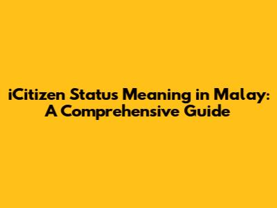 ICitizen Status Meaning In Malay: A Comprehensive Guide