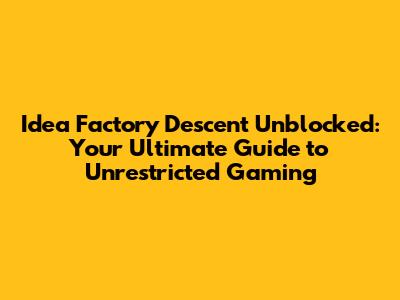 Finding Idea Factory Descent Unblocked: Where to Play Without Limits