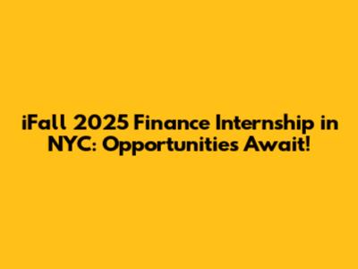 Are you ready to dive into the exciting world of finance in the heart of New York City? The iFall 2025 Finance Internship is your golden ticket! This comprehensive guide will walk you through everything you need to know about securing a coveted finance internship in NYC for the fall of 2025. From understanding the landscape of finance opportunities to crafting a standout application, we’ve got you covered. So, let's jump right in and explore how you can make your mark in the finance sector.