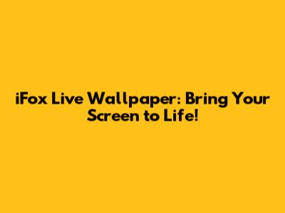 IFox Live Wallpaper: Bring Your Screen To Life!