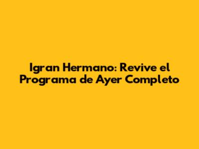 Hey guys! Are you ready to dive back into the drama, the laughs, and all the juicy moments from last night's episode of Igran Hermano? You're in luck! This article is your one-stop shop to catch up on everything you might have missed. We'll break down the key highlights, the most talked-about moments, and maybe even offer a few spicy opinions. So, grab your snacks, settle in, and let's get started. We're going to cover where you can find the Igran Hermano programa de ayer completo, making sure you don't miss a beat of the action.