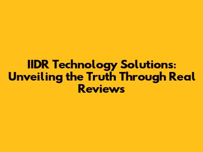 IIDR Technology Solutions: Real Reviews & Insights