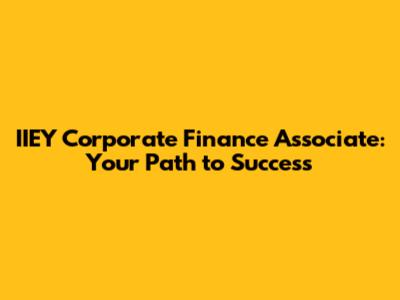 IIEY Corporate Finance Associate: Your Path To Success