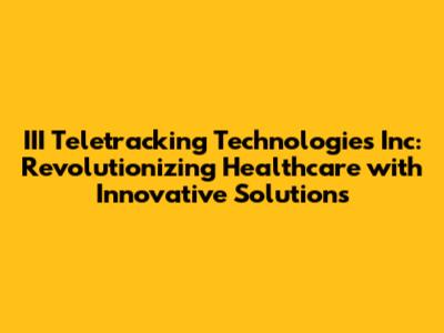 Hey everyone! Ever heard of III Teletracking Technologies Inc? If you're plugged into the healthcare industry, chances are you have. They're a big deal, and for good reason! This article dives deep into what makes Teletracking tick, exploring their groundbreaking technology, how it's changing the healthcare landscape, and what the future might hold. Ready to get started?