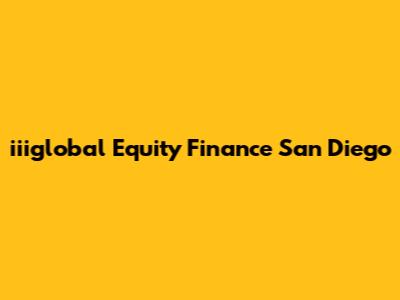 Iiiglobal Equity Finance: San Diego Insights