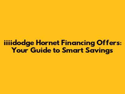Iiiidodge Hornet Financing Deals: Your Guide To Smart Savings
