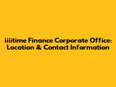 Iiiitime Finance Corporate Office: Location & Contact