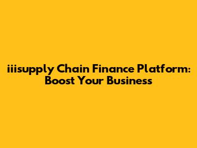 Iiisupply Chain Finance Platform: Boost Your Business