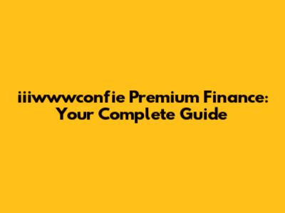 Iiiwwwconfie Premium Finance: Your Complete Guide