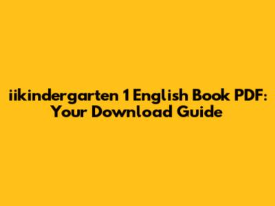 Iikindergarten 1 English Book PDF: Your Download Guide