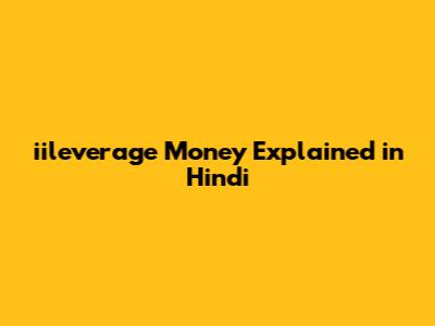 Iileverage Money Explained In Hindi