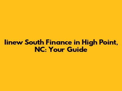 Iinew South Finance In High Point, NC: Your Guide