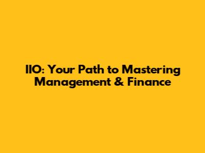 IIO: Your Path To Mastering Management & Finance