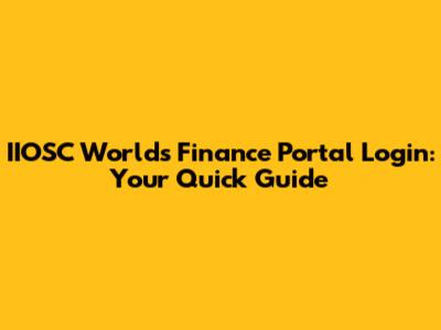IIOSC Worlds Finance Portal Login: Your Quick Guide