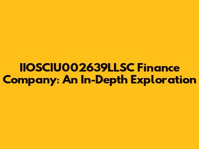 IIOSCIU002639LLSC: Exploring This Finance Company