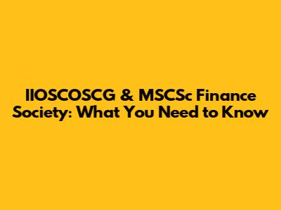IIOSCOSCG & MSCSc Finance Society: What You Need To Know