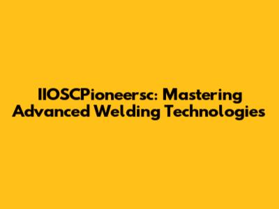 IIOSCPioneersc: Mastering Advanced Welding Technologies