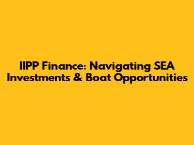 IIPP Finance: Navigating SEA Investments & Boat Opportunities
