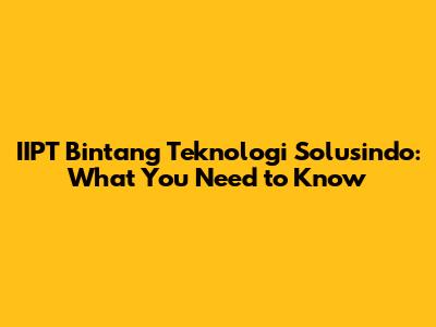 IIPT Bintang Teknologi Solusindo: What You Need To Know