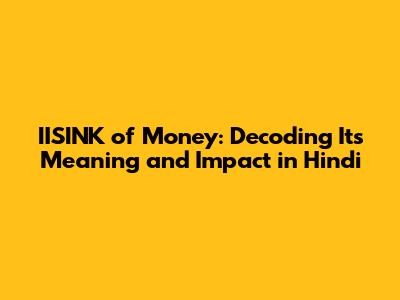 IISINK Of Money: Meaning & Impact In Hindi