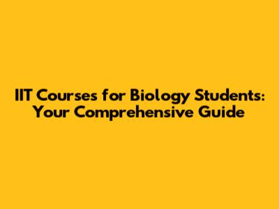 IIT Courses For Biology Students: Your Guide