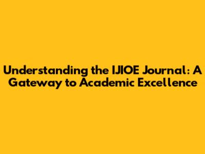 Understanding the IJIOE Journal: A Gateway to Academic Excellence