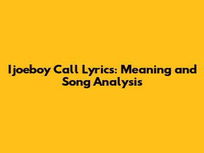 Ijoeboy Call Lyrics: Meaning And Song Analysis