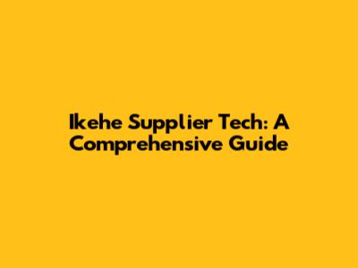 Ikehe Supplier Tech: A Comprehensive Guide