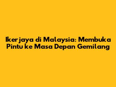 Ikerjaya Di Malaysia: Prospek Dan Peluang Menarik